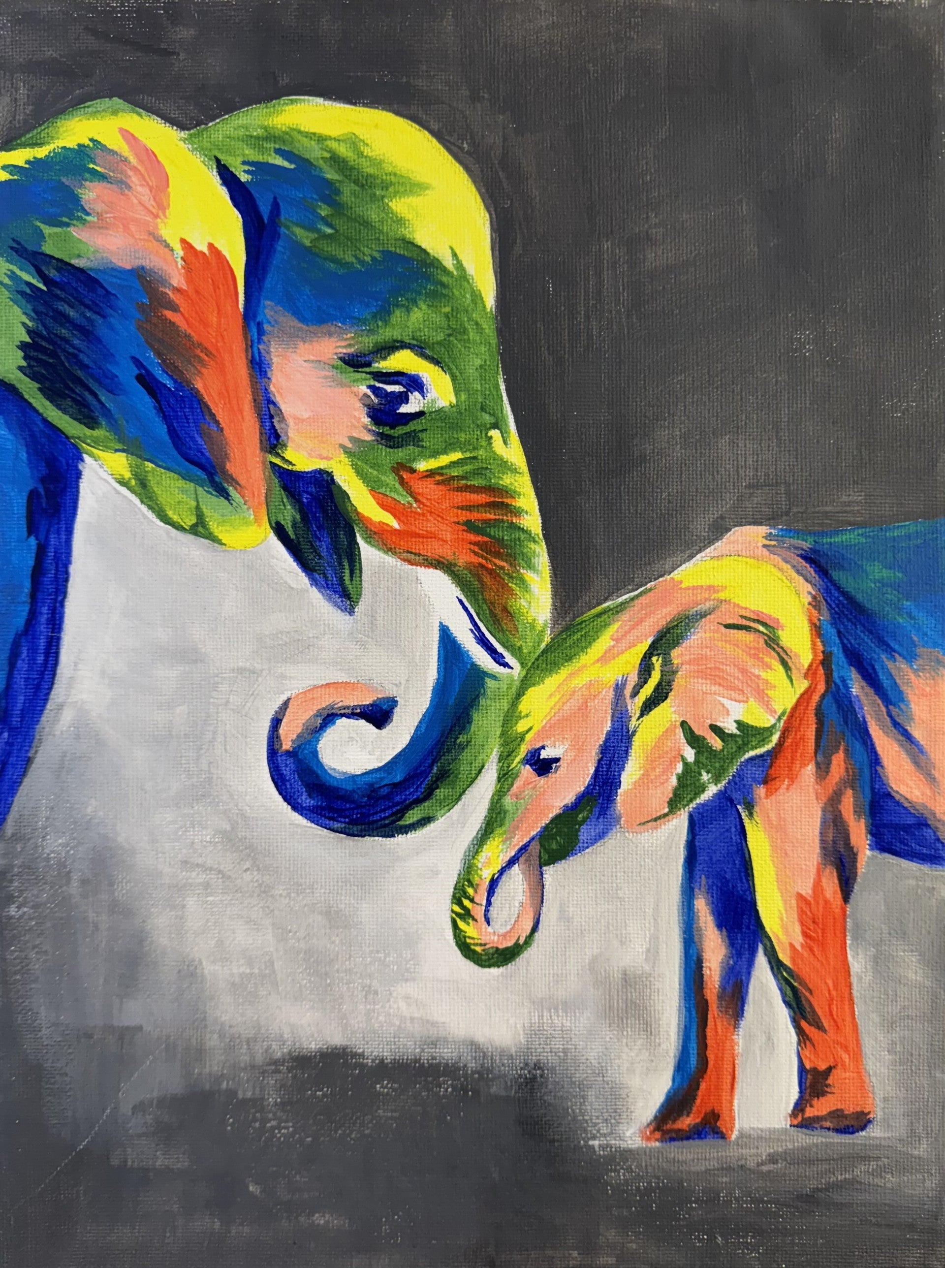 Painting the Adult and Baby Elephant is so much fun. The instructions are there for guidance but feel free to include your own unique style to the painting or even change the colours. Any colour looks amazing - tones of blues or maybe brighter pinks – anything goes!