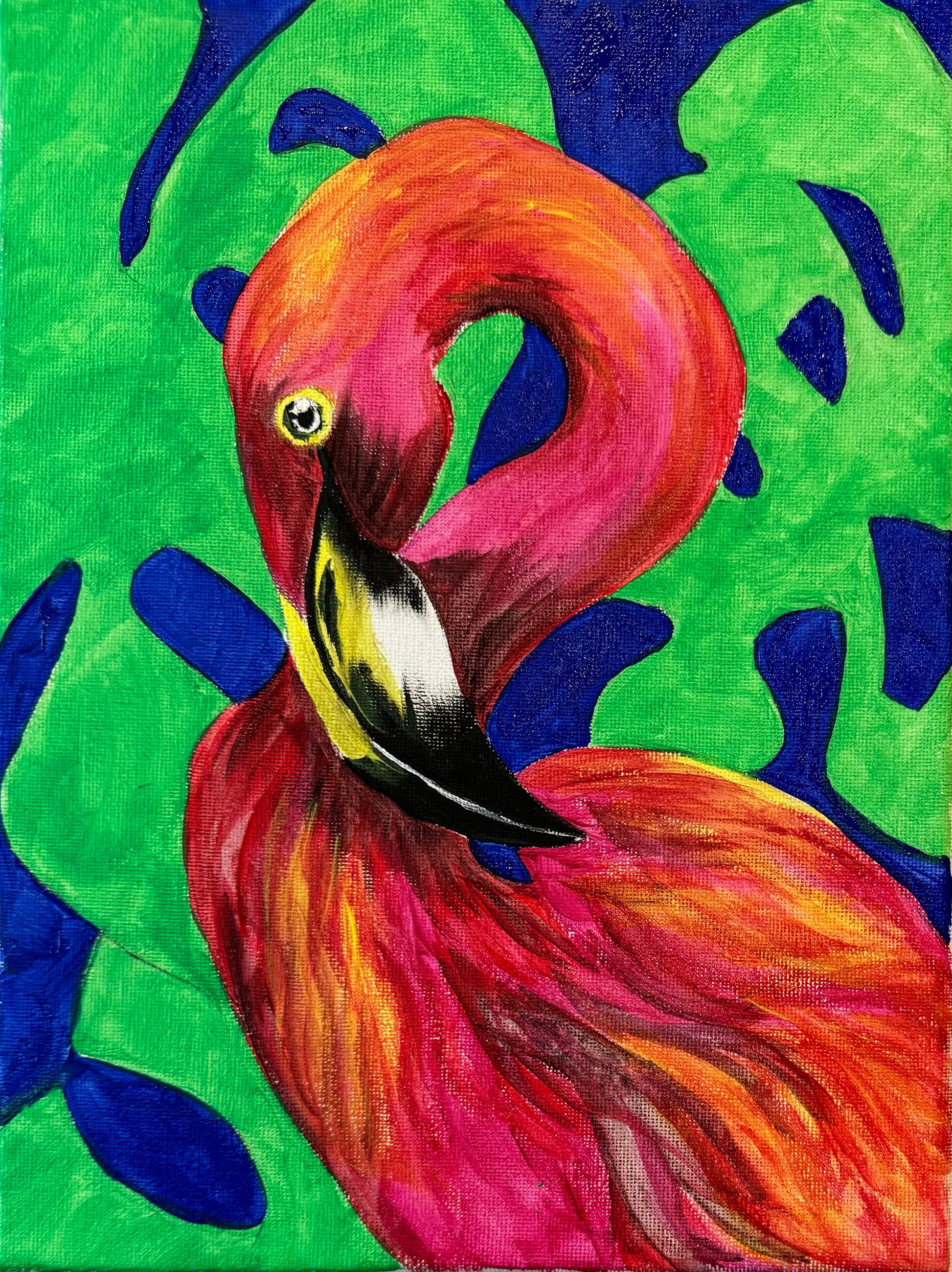 Create a funky fun Flamingo with these bright colours and bold design. The instructions are there for guidance but feel free to include your own unique style to the painting or even change the colours.